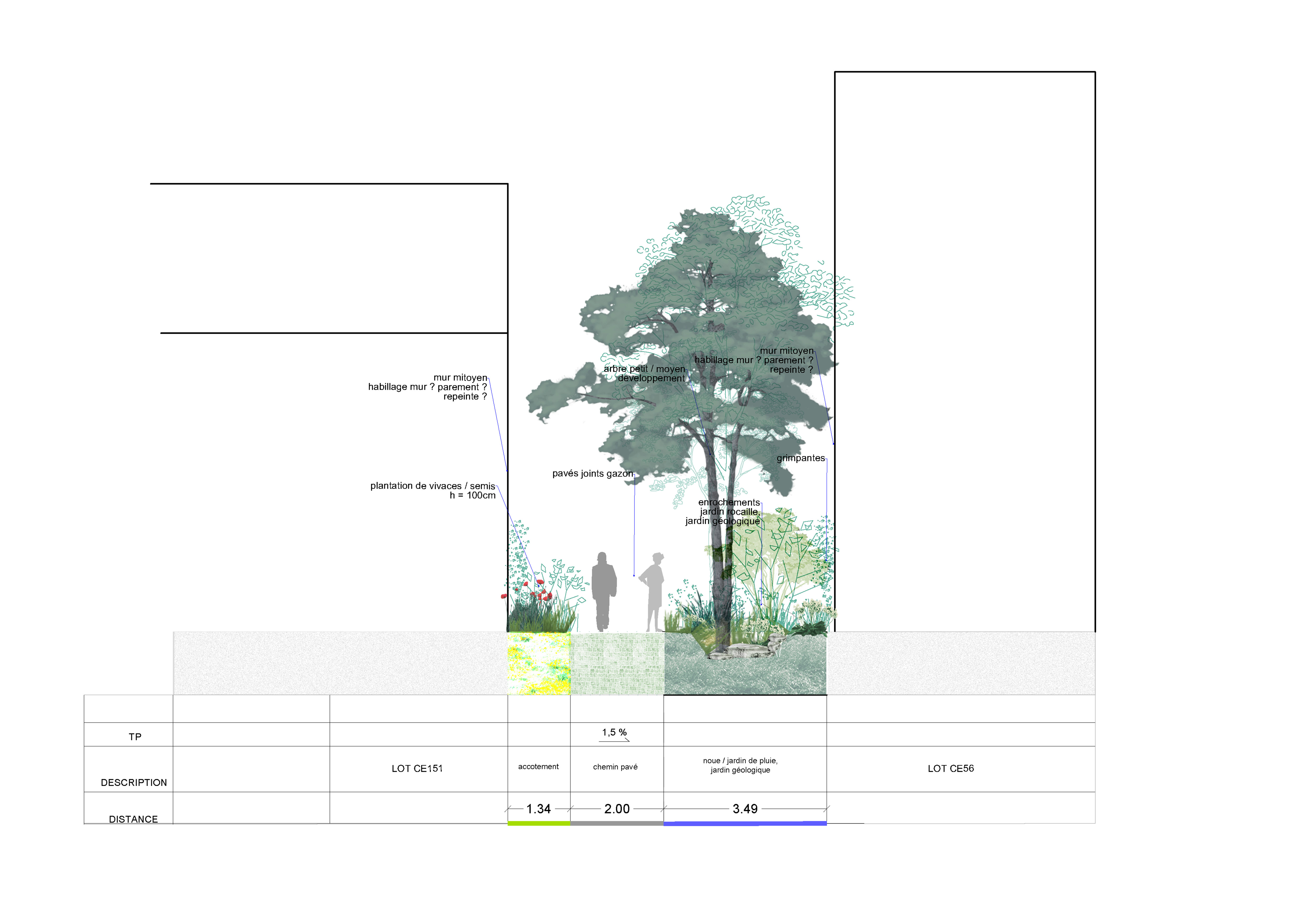 Coupe paysagère de la séquence du Jardin d'enrochement de la venelle
